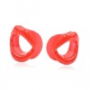 Deze open mouth gag is in rood vormgegeven in de vorm van een mond. Het materiaal is zacht siliconen, zodat de drager de mond nog enigszins kan bewegen. Uiteraard kan de mond van de drager niet dicht. De mond heeft een ronde opening van plusminus 3,8 cm.