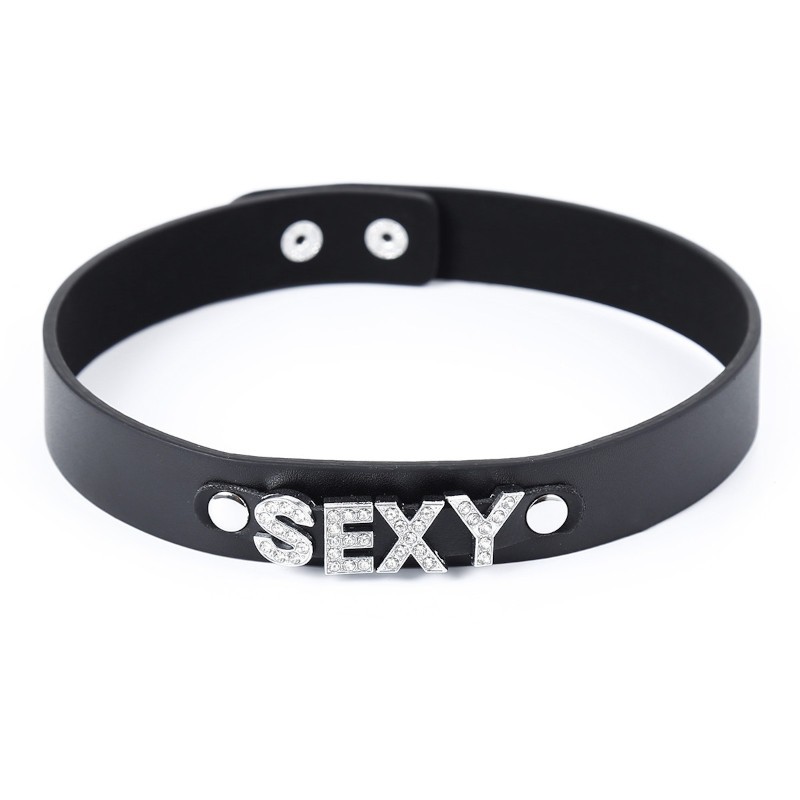 Deze smalle PU leren halsband met SEXY letters is ontworpen voor liefhebbers van opvallende BDSM accessoires met een speelse en verleidelijke uitstraling. De halsband is uitgevoerd in zwart PU leer en heeft in het midden glitterende letters SEXY, waardoor dit model direct een opvallende en herkenbare look krijgt.