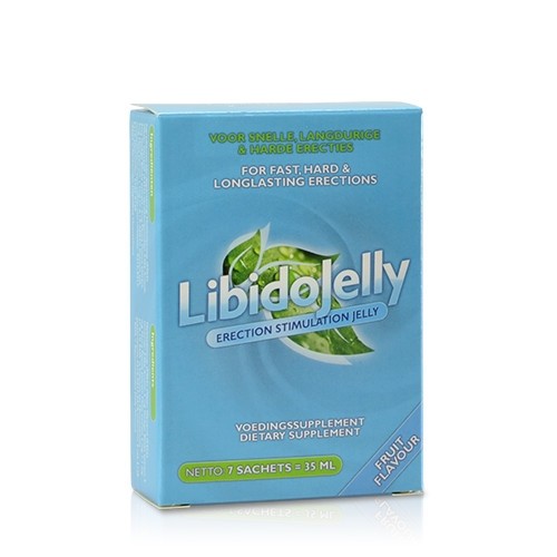 LibidoJelly is het eerste vleibare erectieproduct op de markt. Het voordeel van dit erectieproduct is dat het vrij snel in het lichaam kan worden opgenomen, waardoor het effect ook vrij snel zal zijn. Binnen enkele minuten is het effect merkbaar als een aangename tinteling van een groeiende erectie, zonder negatieve bijwerkingen! Gebruik: Neem 1 sachet gel vlak voor seksuele activiteit. Doe de gel direct in de mond of meng het in een glas water.